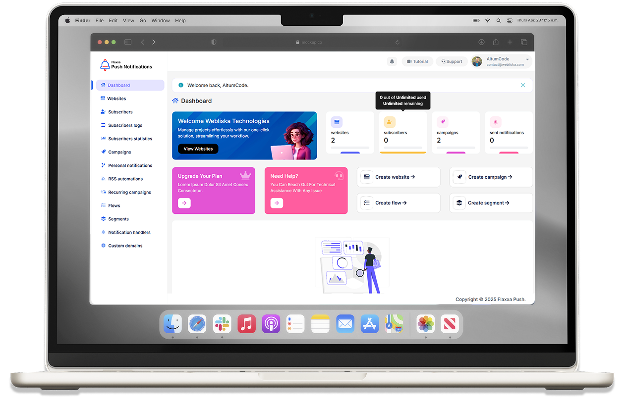 Send mobile push notifications, web push notifications, and in-app notifications to maximize reach and impact.